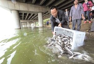 昆明治理滇池内源污染护生态 73吨鲢鳙鱼入滇池