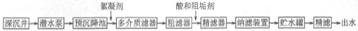 (2)山东长岛南隍城纳滤示范工程。山东长岛南隍城纳滤示范工程是将纳滤新技术在高硬度海岛苦咸水的实际应用。系统流程如图1 所示。