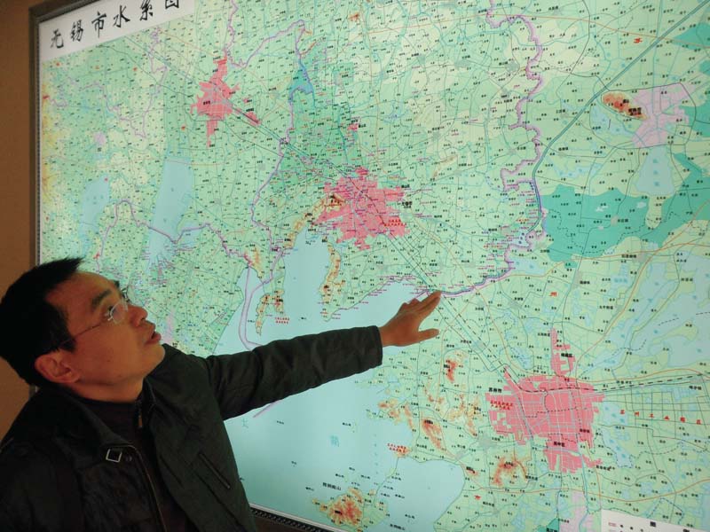 无锡市太湖办治理规划处处长罗清吉向记者介绍太湖水污染防治情况