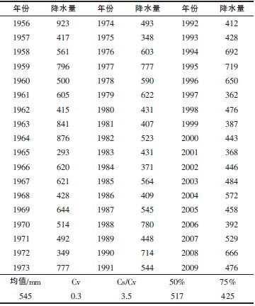 20世纪60年代以来,白洋淀上游王快、横山岭、西大洋、龙门和安各庄等5座大型水库和瀑河中型水库的修建,基本拦截了上游来水,用于工农业及生活用水,入淀流量逐年减少。由于入白洋淀河流众多,无完整实测入淀资料,本次根据近30年淀区蓄变量反推入淀水量。白洋淀流域1956~2009年面平均降水统计见表2,反推的入淀水量见表3。