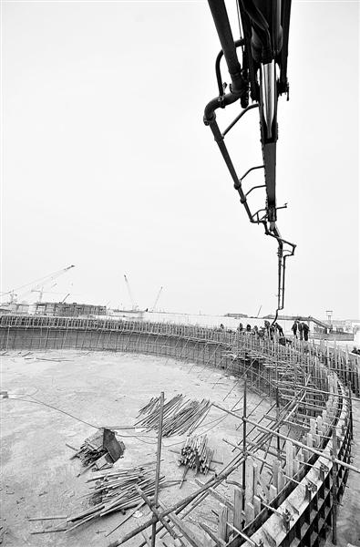 图为一台大型施工设备在津南污水处理厂沉淀池现场作业